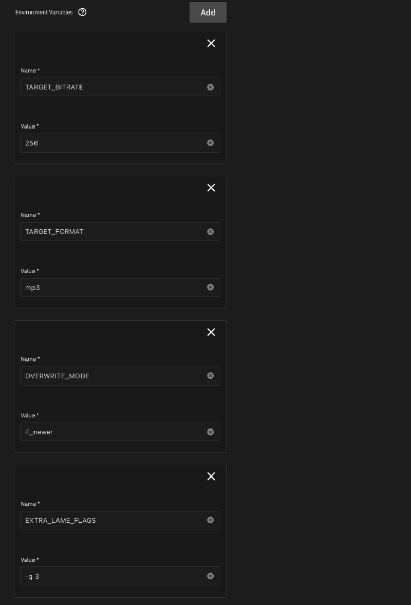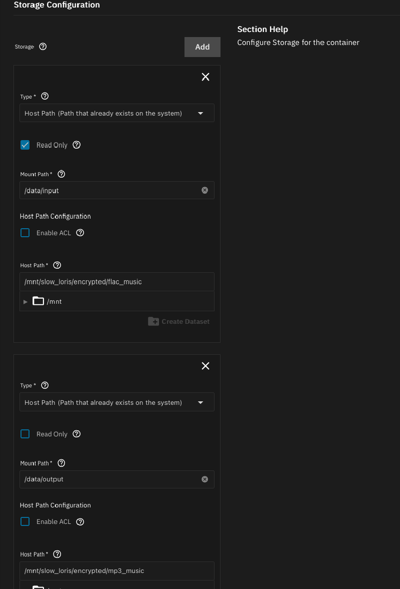 You can check out DockerHub and GitHub for more info on the project and its features, but what we need to do is create a deployment per target format in the TrueNAS UI - just go to Apps -> Discover Apps -> Custom App and configure it a bit like this: